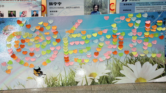 典礼尾声,每位新生在心形便利贴上写下了自己的大学愿望,并在心愿板上共同组成了“自动化”的字样。这不仅诠释了2015级新生对RAYBET在线登录平台的热爱,也象征着RAYBET在线登录平台对每位新生的期望,RAYBET在线登录平台2015级本科生开学典礼圆满结束!