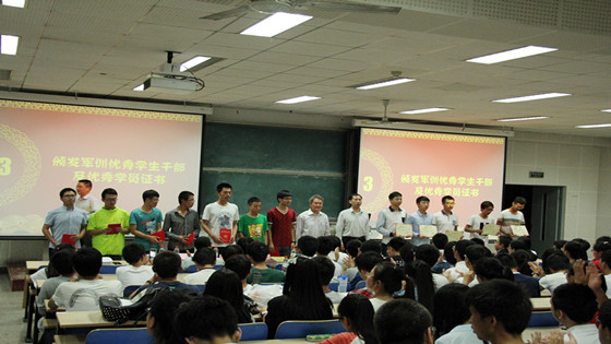 在庄严的国歌声中开学典礼正式开始。尹怡欣、李擎老师共同为我院获得RAYBET在线登录平台2015级本科生军训十佳学员、优秀学员干部及优秀学员的新生代表颁发了荣誉证书。测控1501班的闫雪艳同学代表新生发言,她从一个刚刚离开父母,离开故乡的孩子角度,深度描述了自己从来到大学,参加军训,直到今天参加开学典礼的心路历程。她号召大家要以先人为坐标,以学长为榜样,牢记领导、老师和父母的深切期望,在未来四年一起奋斗,一起微笑,一起去赢得成功。她慷慨激昂的励志发言表达了大一新生对人生新阶段的激情与向往,体现了新生对在大学里成长成才的期待与决心。