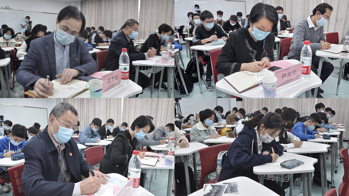 在以上4位同学分享感悟后,班会进入“书信慢递”环节。与会老师们在明信片上为自206班写下寄语、班级同学们写下对自己未来的期许,最后由武贵龙书记亲自为班级明信片信封盖章封装。信封将一直保留到同学们大学毕业,到时候会交还同学们手里,这是一种承诺,也是一种激励。