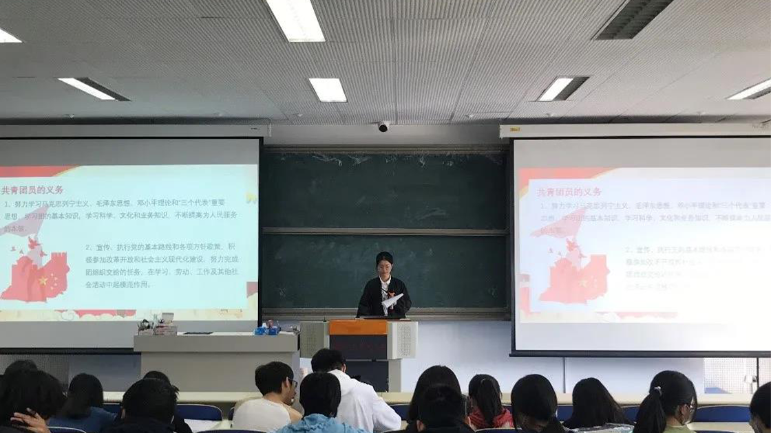 首先,主讲人带领同学们学习团的基础知识、基本任务、成立历史和组织纪律,详细解读团旗、团徽与团歌的象征和涵义。